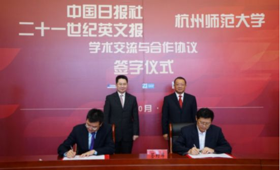 10月31日,中国日报社二十一世纪英文报与pg电子试玩 合作签约仪式在杭州成功举办。中国日报社副总编辑曲莹璞、pg电子试玩 校长杜卫亲临签约现场,共同见证了签约仪式。中国日报社二十一世纪英文报总编辑兼总经理曾庆锴与pg电子试玩 副校长杨磊代表双方签署合作协议。