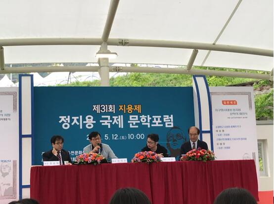 5月12日,韩国沃川文化院邀请pg电子试玩 朝鲜语系教师金在国博士和在韩交换学生参加在韩国大田沃川举办的第31届芝溶国际文化庆典,这一庆典旨在纪念韩国著名诗人郑芝溶。金在国博士3月起受邀至韩国三育大学进行学术合作研究,并给韩国学生讲授“中国文化”等课程。在金在国老师的带领下,大家一起乘坐由沃川文化院提供的大巴前往沃川,一同前去的还有受主办方邀请的中国作家小饭。他们上午参加了芝溶国际文学论坛,金在国老师应邀做了大会发言,有来自中国、韩国、日本、索马里和越南的作家、诗人参加研讨。下午师生参观了位于沃川的郑芝溶诗人的故居和博物馆,通过相关人员的讲解,大家了解了郑芝溶的生平以及诗歌创作。之后,大家还在工作人员的带领下参观了韩国前总统朴正熙夫人陆英淑女士的故居。故居保存得十分完好,大家也借此机会了解到了一些关于前总统的故事。虽然天公不作美,下了小雨,但同学们的热情没有减少,圆满地参加了所有的活动。通过这次活动,进一步加强了pg电子试玩 与沃川文化院的学术交流,增进了双方的友好关系。