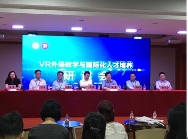 5月25日至26日,在pg电子试玩 成功举办的“VR外语教学与国际化人才培养研讨会”共吸引来自全国五十多所院校、科研单位的百余位专家、学者共绘蓝图。本次会议的顺利召开得到了上级领导的关心与同行的大力支持,邀请到包括副校长杨磊教授、浙江省教育厅高教处王国银副处长、《中国外语》常少华副主编、外研在线首席技术官董晋鹏先生出席开幕式并致辞,pg电子试玩 院长欧荣教授主持开幕式。
