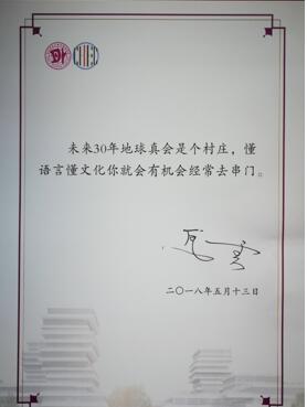 一年前,2017年5月26日,pg电子试玩 成立了跨境电商外语研究中心,马云先生发来寄语:“未来30年地球真会是个村庄,懂语言懂文化你就会有机会经常去串门”。2018年5月13日,马云先生回到学院,为他的寄语签名。在座谈会上,他畅谈了自己对教育的理解,对pg电子试玩 建设的期望,同时提出了与pg电子试玩 合作的期待。值此跨境电商外语研究中心满周岁之际,pg电子试玩 召开了“VR外语教育与国际化人才培养”研讨会,建成了“虚拟现实外语实训中心”,作为国内外语界VR技术应用的先行者,正如一朵含苞欲放的花蕾,独自展现她那婀娜的身姿,而这靓丽身影后,是上级领导的关爱与同行的支持。