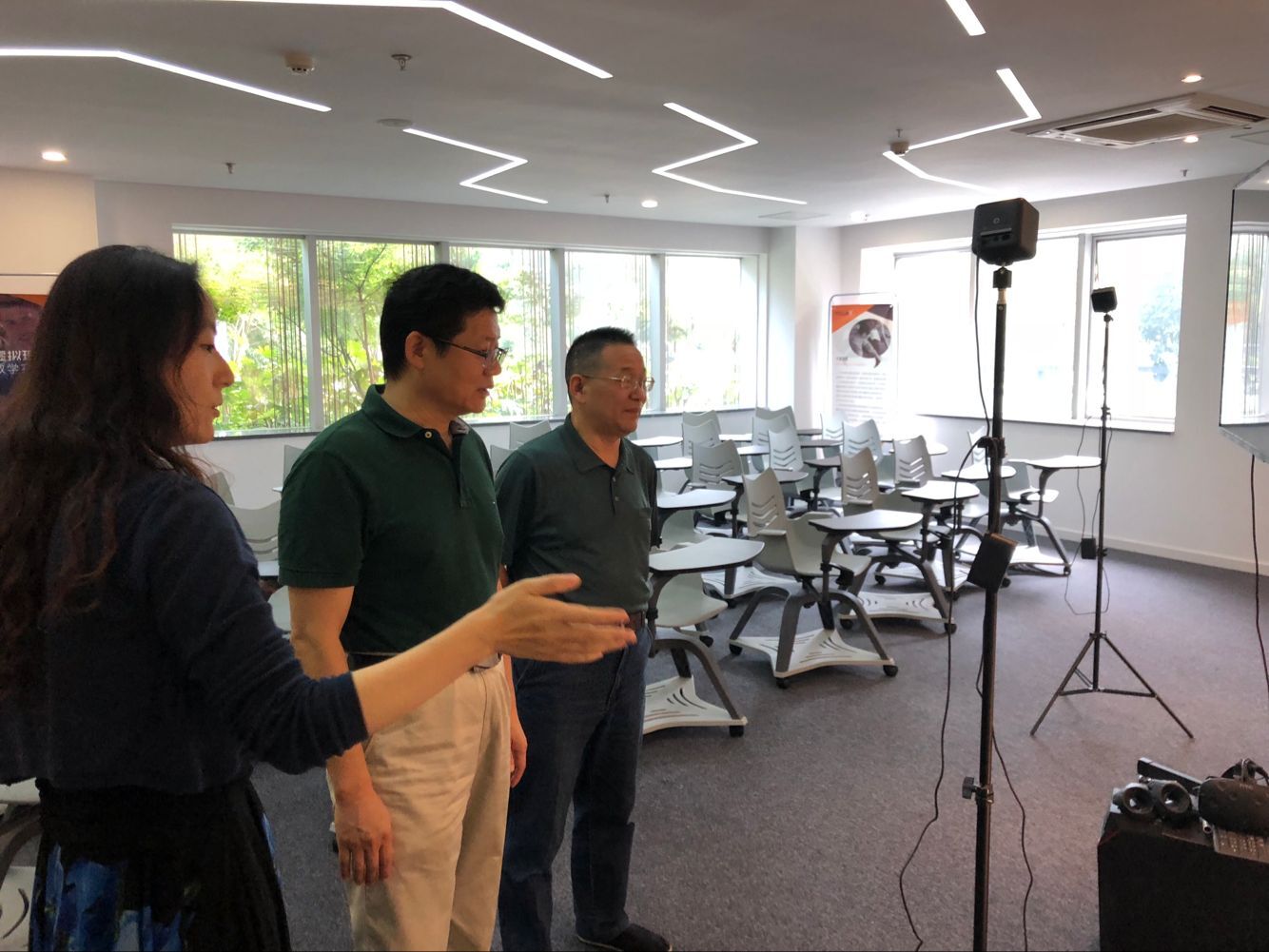 pg电子试玩 李颖副院长向王书记、杨校长汇报了pg电子试玩 虚拟现实外语实训中心建设的成效,并展示了相关设备的使用运行情况。她说,pg电子试玩 pg电子试玩 2017年9月开建虚拟现实外语实训中心,它的建成极大地延伸了师生的学习与实训空间,尤其是外语演讲教学与实训方面尚属全国高校外语界首创。学院计划结合教学活动和学科建设,以实验室为依托,充分发挥实验室服务教学、服务研究和服务社会的功能,鼓励全院教师充分利用好学院实验室及其资源平台创新教学模式。学校两位领导莅临学院检视,显示了学校对该中心的重视和关心,该中心的成立及发展对pg电子试玩 迎接教育部本科教学审核评估有着重要的推进作用,同时该中心也是pg电子试玩 跨境电商实训基地,对于促进商务英语专业建设起到了积极的作用。