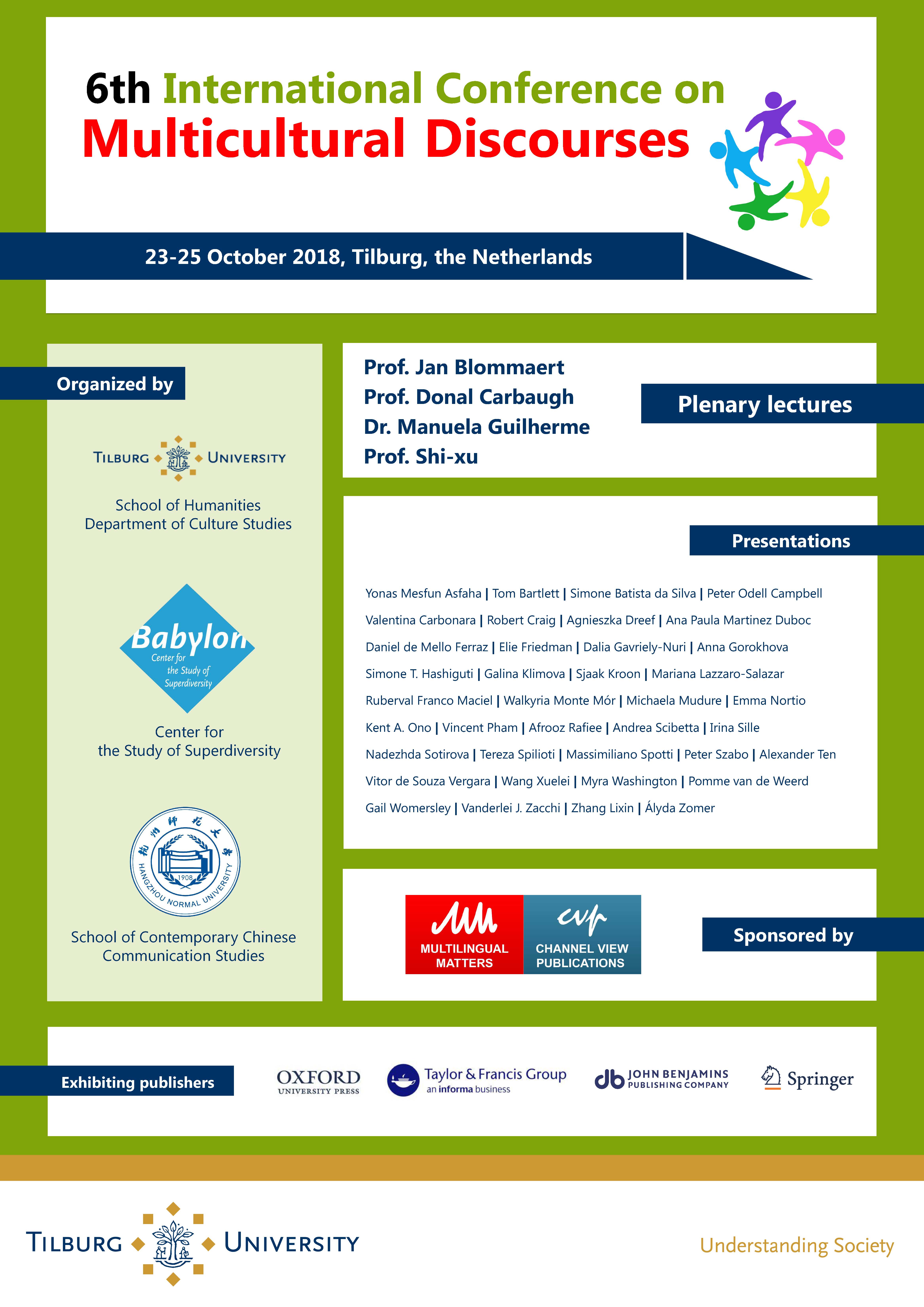 本次活动由荷兰蒂尔堡大学文化研究系和巴比伦文化多样性研究中心承办,是“话语与多元文化”国际会议继2016年在巴西举行以来再一次在海外举行,并获得成功。会议进一步扩大了pg电子试玩 、pg电子试玩 和当代中国话语研究院的国际声誉,同时也推动了文化话语研究在全球的学术影响力。