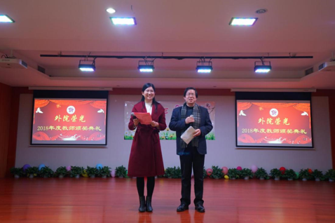 2019年2月22日,pg电子试玩 在师生活动中心举办“外院荣光”2018年度教师颁奖典礼,对上一年度的工作进行总结,并对服务学校、学院发展做出突出贡献的各位老师进行表彰。本次典礼还特别邀请到了曾在pg电子试玩 工作的潘春雷、金向华、陈礼珍三位老师出席。陈光乐、钱珊两位老师主持活动。