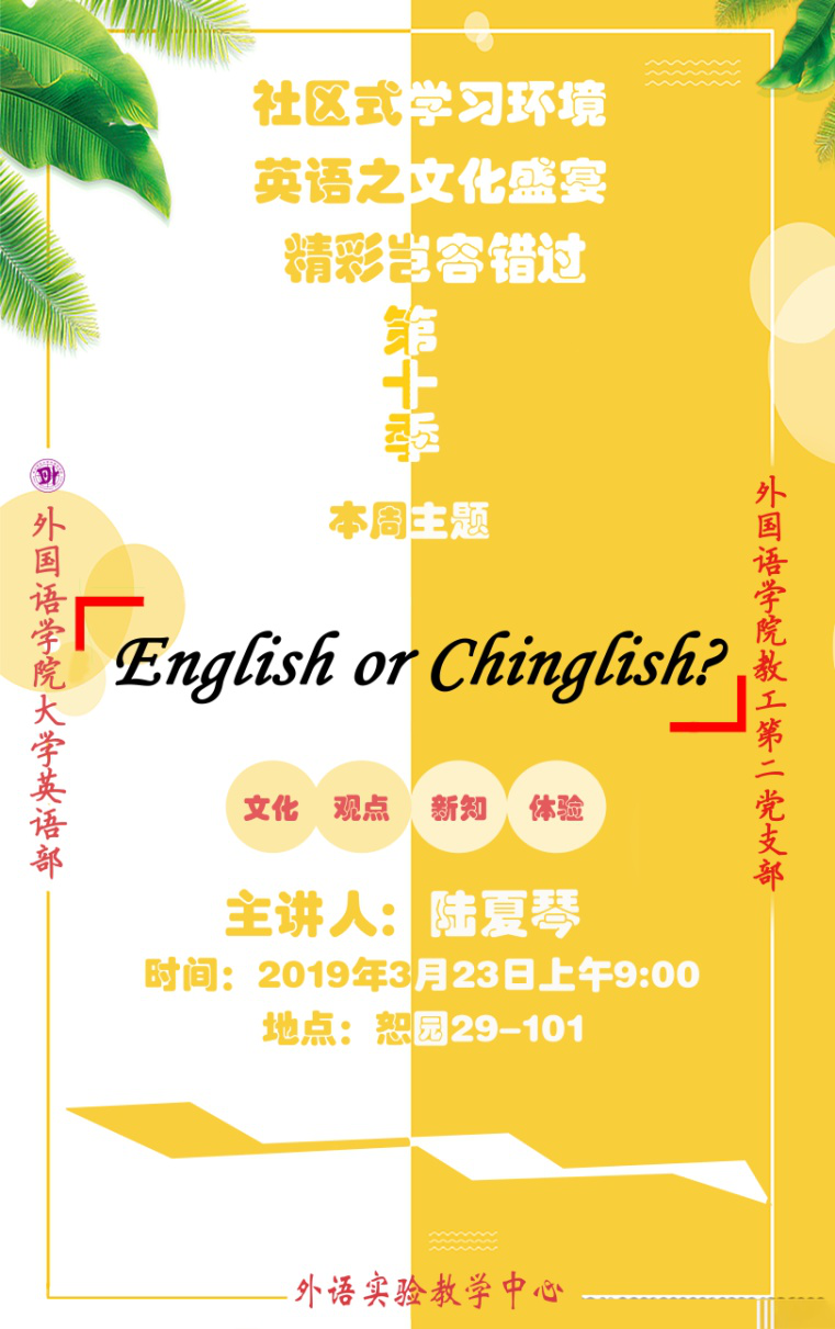在pg电子试玩 教工第二党支部的引领下,结合大学英语教学改革的实际,为在校学生营造良好的社区式英语学习氛围,从而提升学生的英语学习水平,扩大学生的视野,支部所属的大学英语教学部为全校学生开设的周末英语专题讲座活动目前已经进入了第十季第二期。