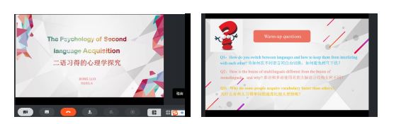 此外,英语系还组织了优秀教师、获奖教师代表开设线上公开课。4月17日下午,骆蓉老师在自己的班级钉钉群,展开了“二语习得”课程的线上公开课。学院领导和教师积极加入钉钉群, 在线观摩了课堂内容和学生的线上学习情况,课堂气氛十分热烈。