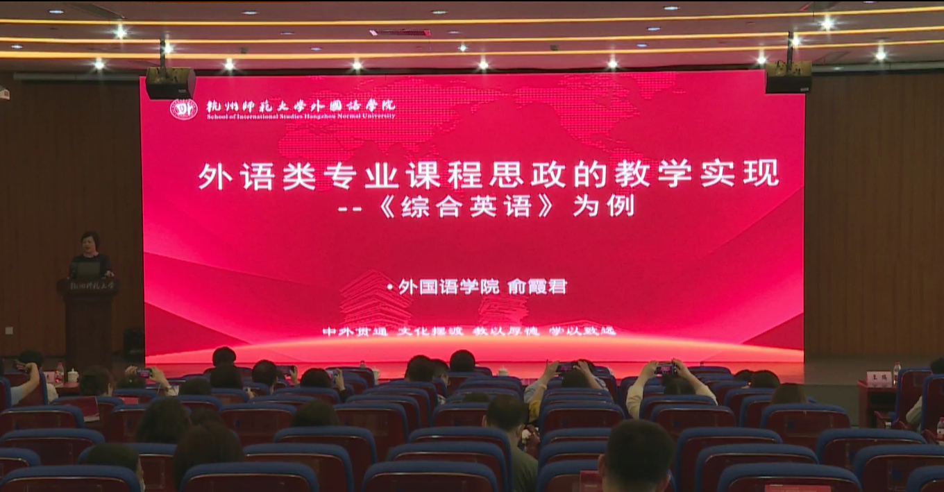5月28日,根据省教育厅统一部署,2021浙江省高校课程思政研讨会暨教育类课程思政现场交流会在我校仓前校区学术交流中心举行。黄兆信副校长首先对会议的召开表示了热烈祝贺,介绍了杭师大整体课程思政的顶层设计和改革创新方案,希望兄弟院校共同促进课程思政建设的开展。pg电子试玩 英语系俞霞君主任以“外语类专业课程思政的教学实践--《综合英语》为例”介绍了如何从思政建设的要求、学科专业标准及学校人才培养目标出发,在具体课程中深入落实课程思政。